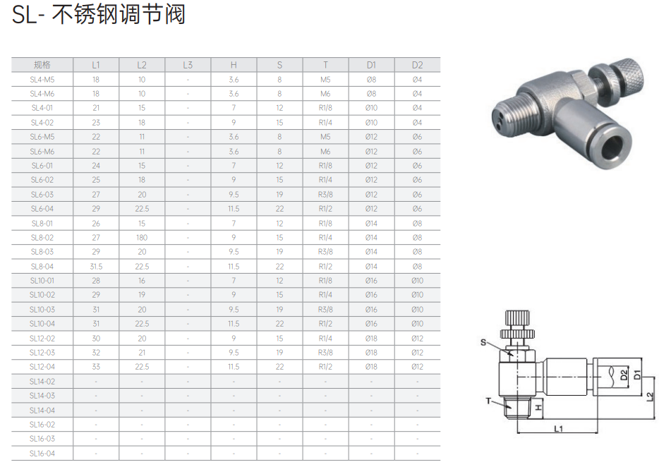 SL 公制 φ3.2,φ4,φ6,φ8,φ10,φ12,φ16 M5・M6・RC 1/8,1/4,3/8,1/2