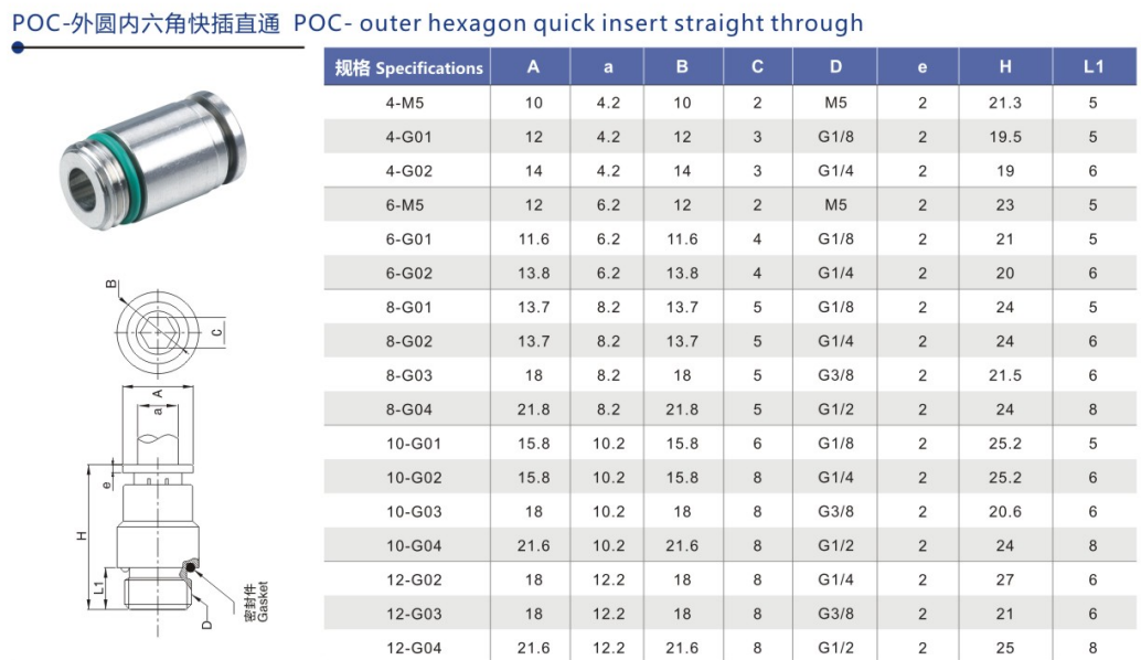 POC 公制 φ3.2,φ4,φ6,φ8,φ10,φ12,φ16 M5・M6・RC 1/8,1/4,3/8,1/2