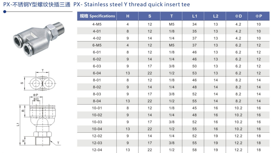 SPX Stainless Steel Y Thread Quick Insert Tee